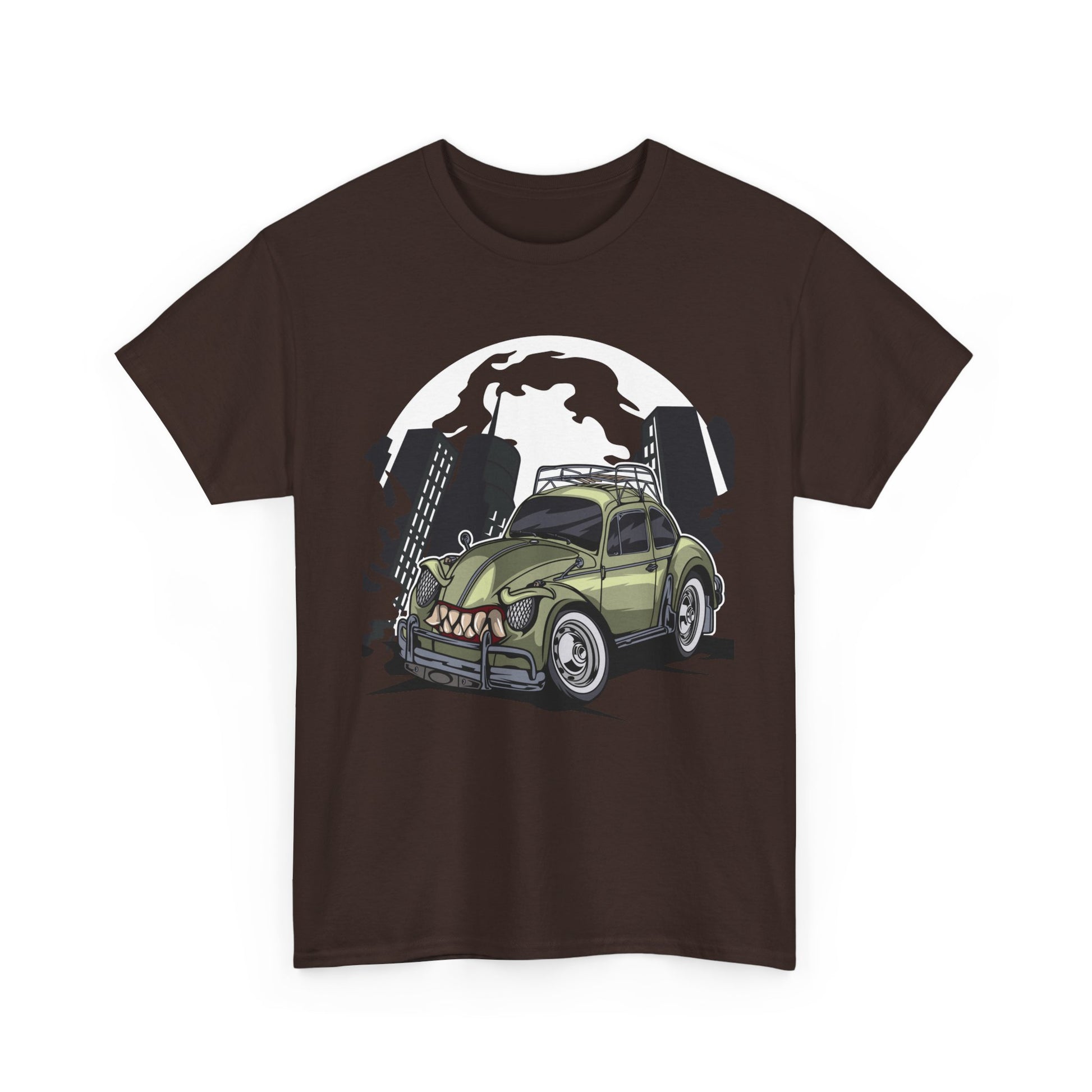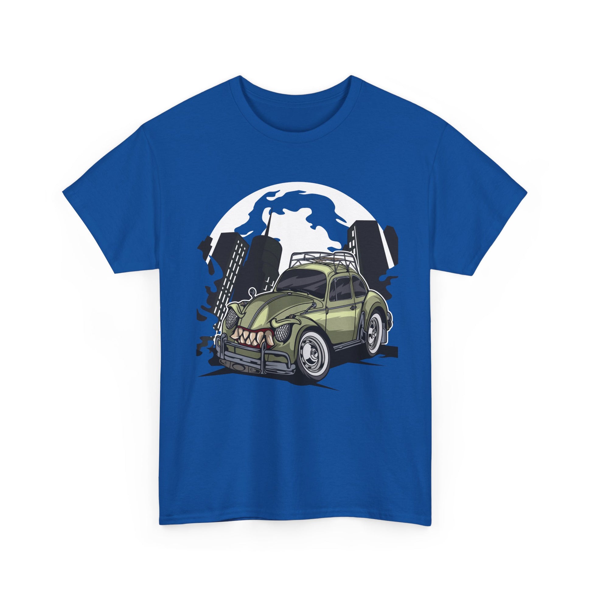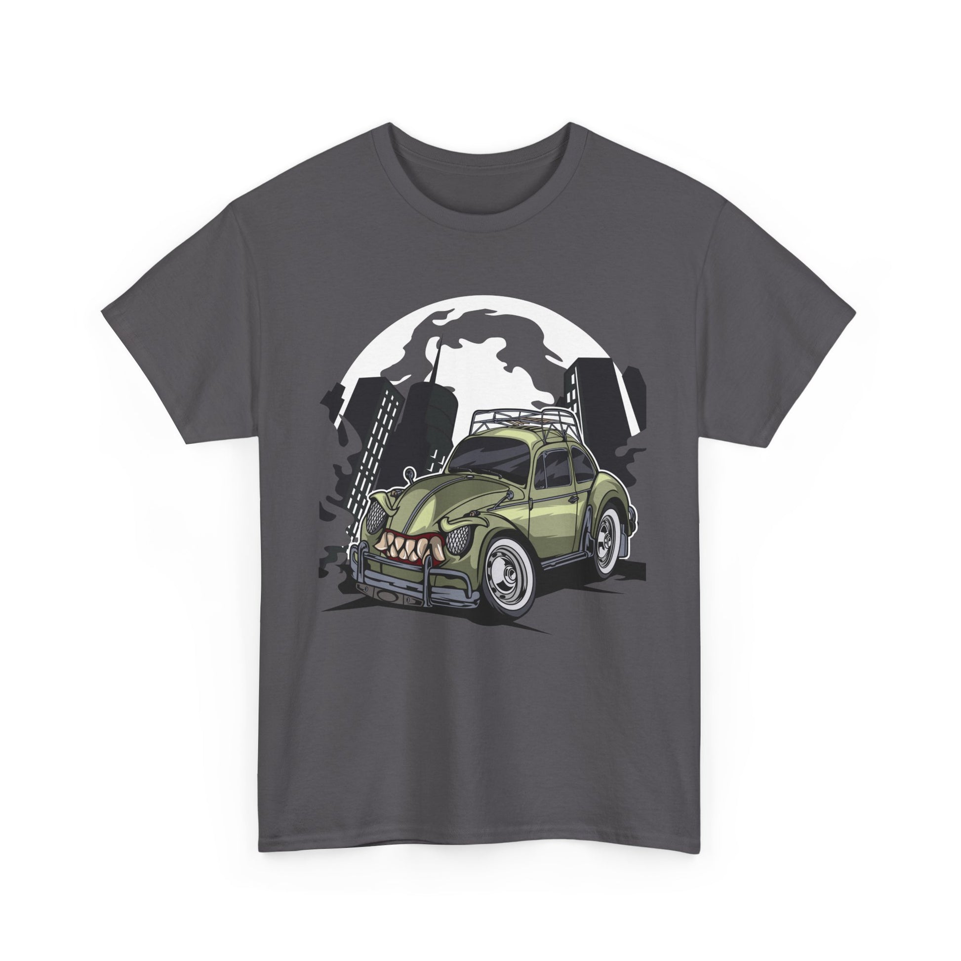Vintage car enthusiasts and urban art lovers will adore this monstrous beetle art print on this comfortable and versatile T-Shirt. The unique retro car illustration gives off a cool and edgy vibe, perfect for casual wear or adding a statement piece to any outfit. Ideal for those who appreciate vintage and urban artwork, this T-Shirt is great for gifting during birthdays, holidays, or as a special treat for oneself.