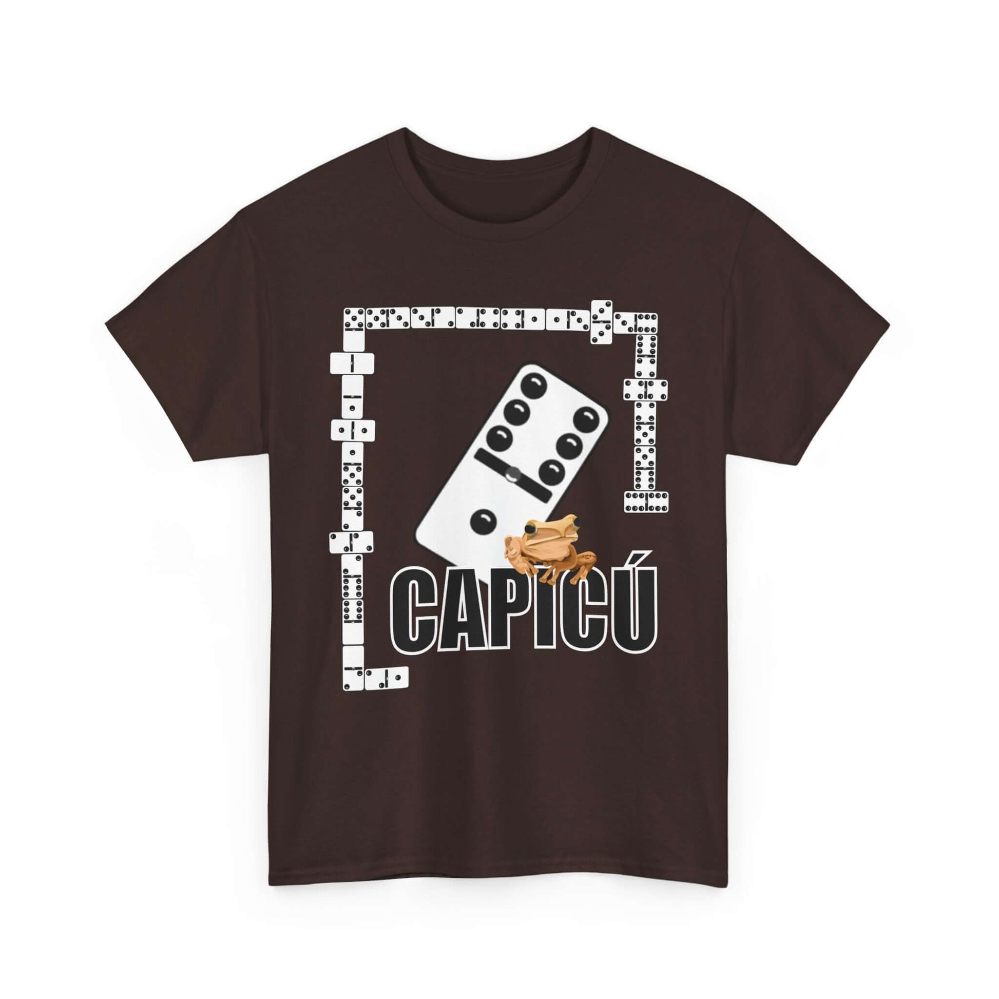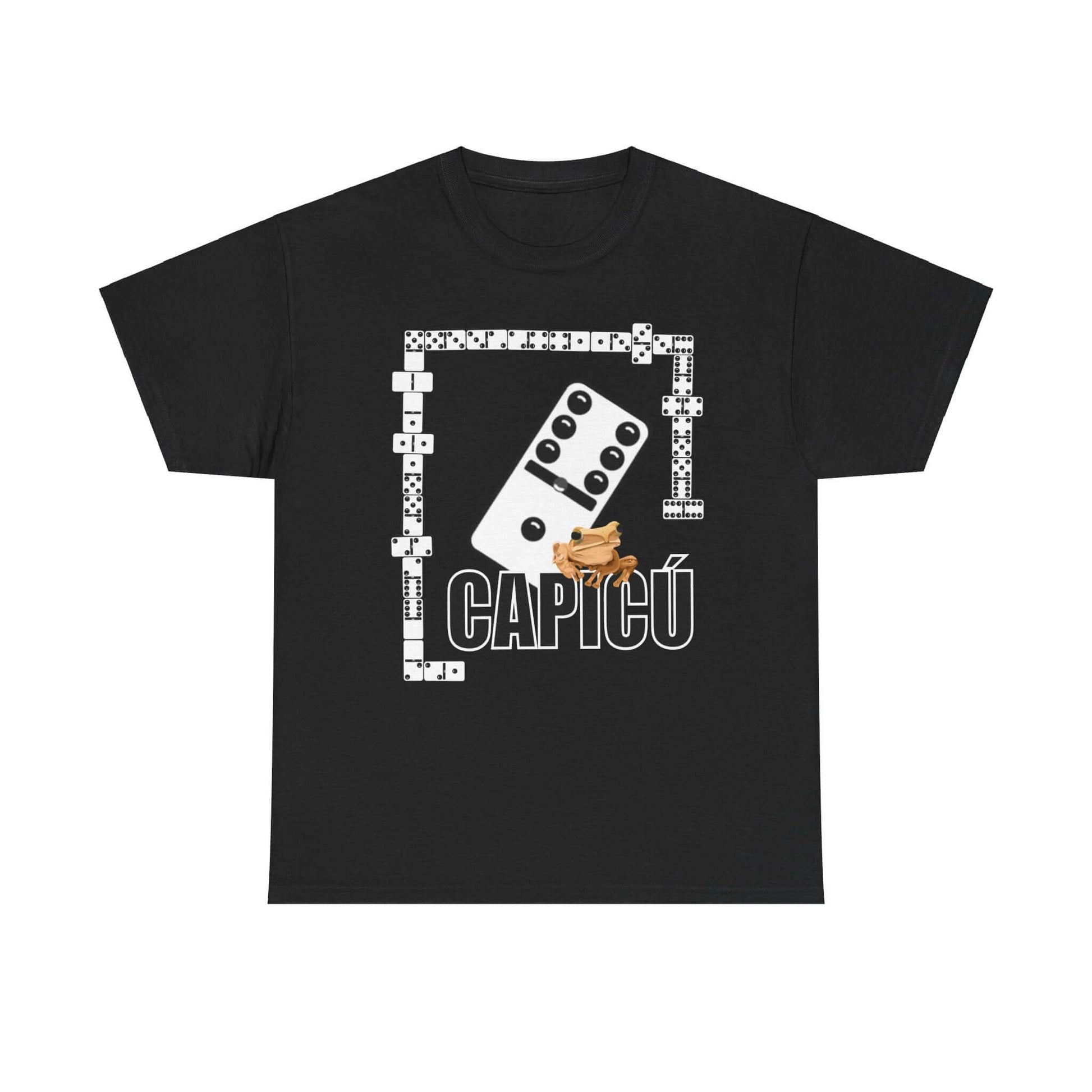 CAPICÚ Black T-Shirt - Unique Domino Design with Whimsical Coqui Accent"