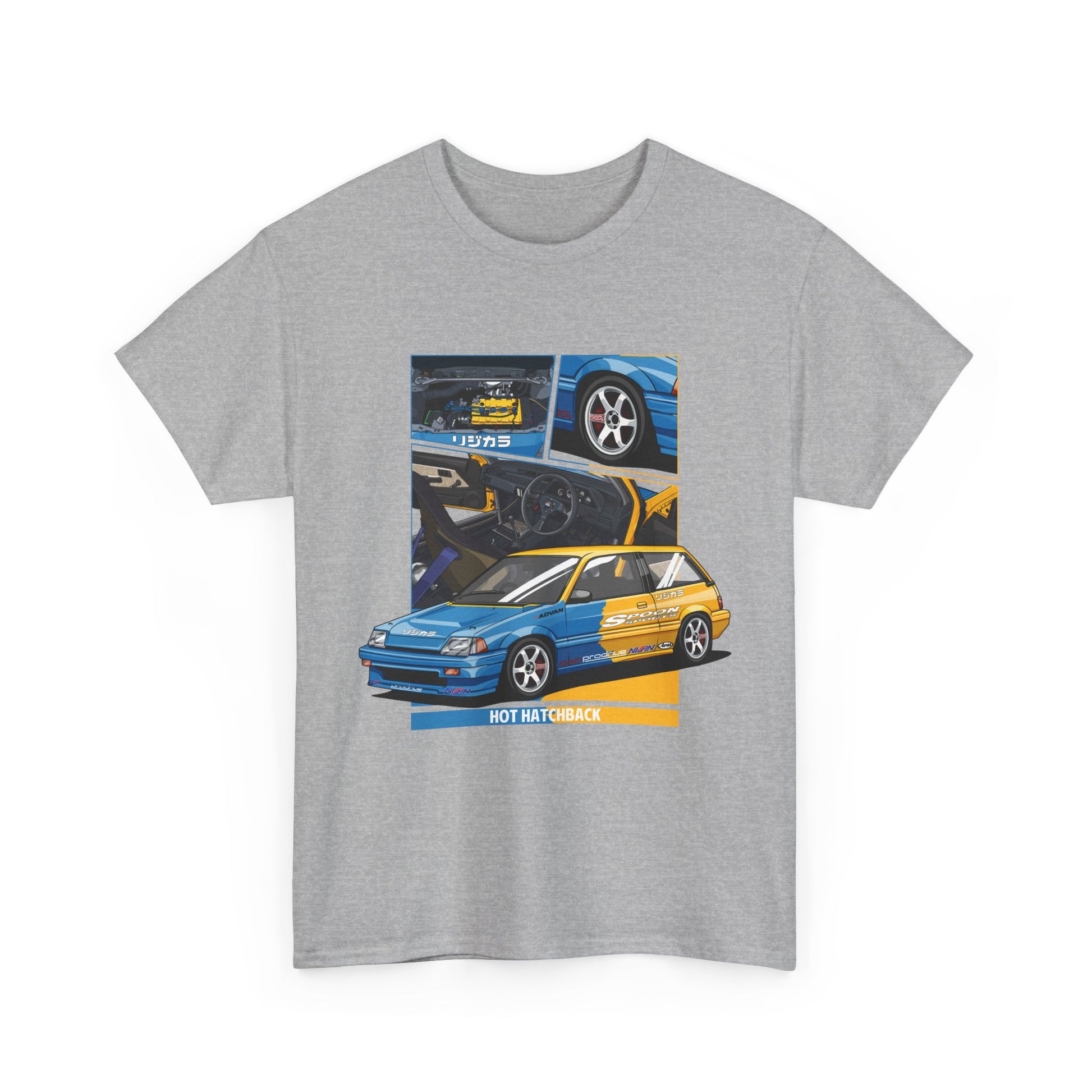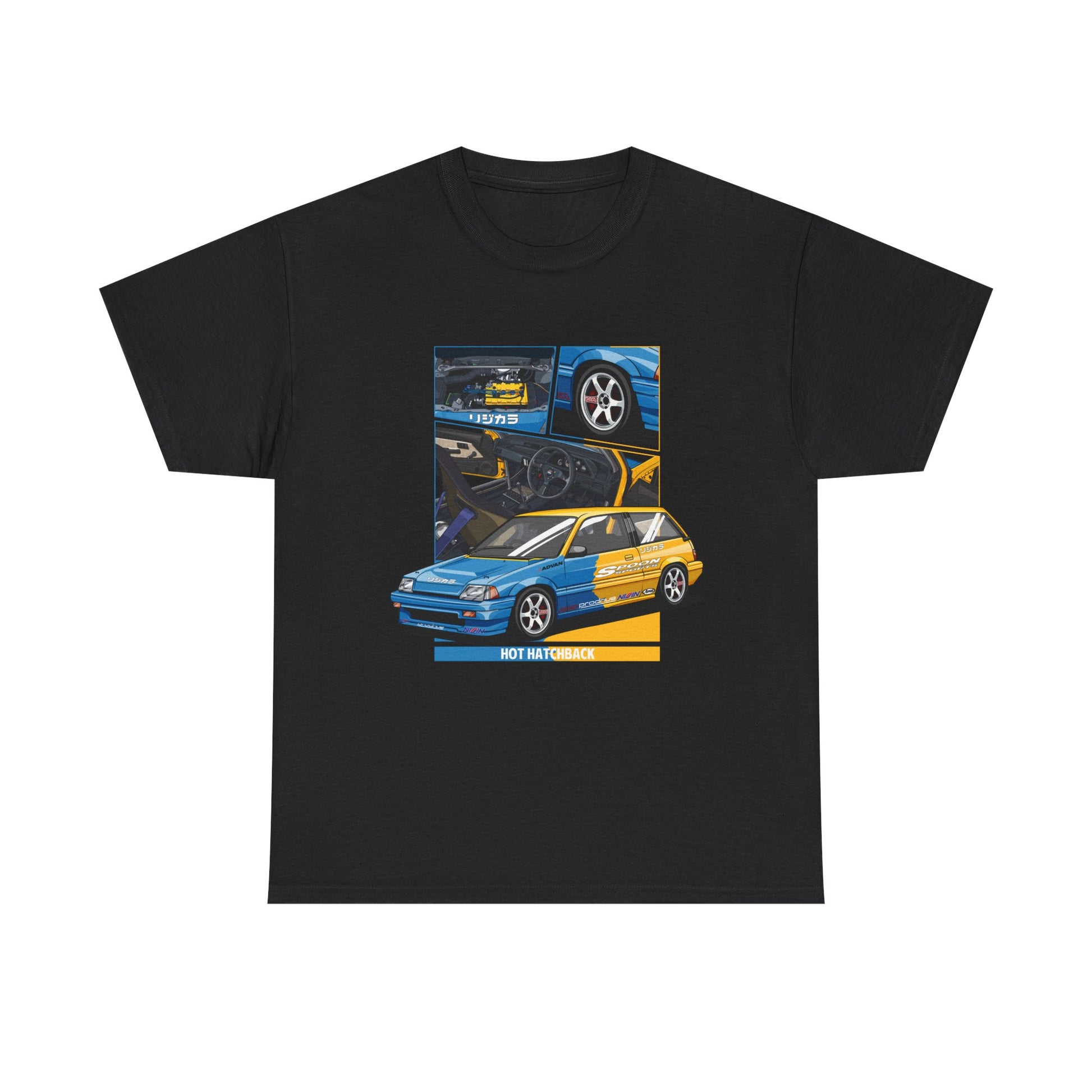 This Tee features a hot hatch, drift, JDM world design, giving off a cool and edgy vibe. Perfect for car enthusiasts and fans of Japanese automotive culture. Ideal for casual wear or attending car shows and events.