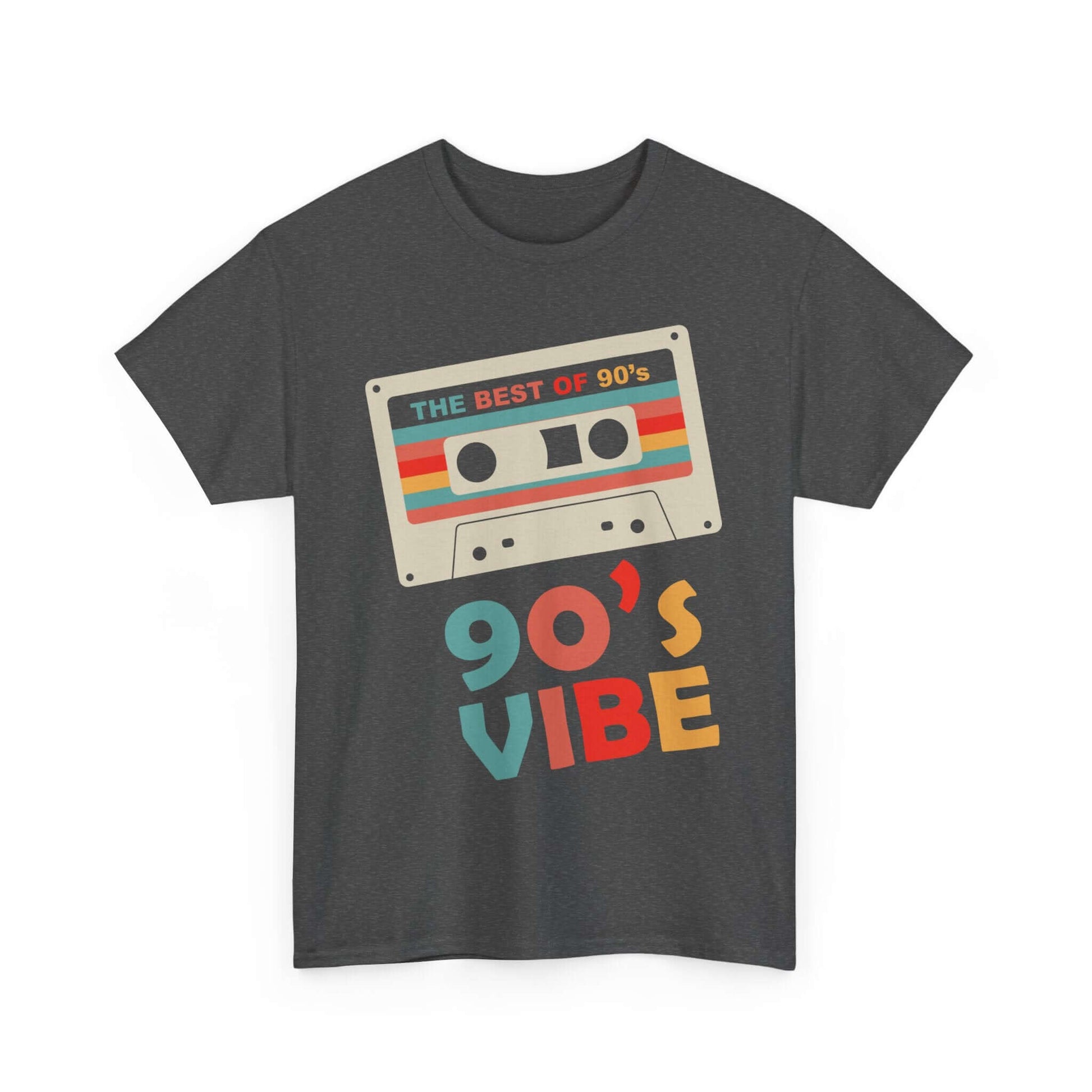 Relive the vibrant 90s with this eye-catching graphic tee featuring a colorful cassette tape and the playful phrases “THE BEST OF 90’s” and “90’s VIBE.” Perfect for anyone who loves the nostalgic charm of the 1990s, this design is a great addition to your wardrobe or a unique gift for retro enthusiasts. Embrace the 90s vibe and make a bold statement with this fun and stylish tee.